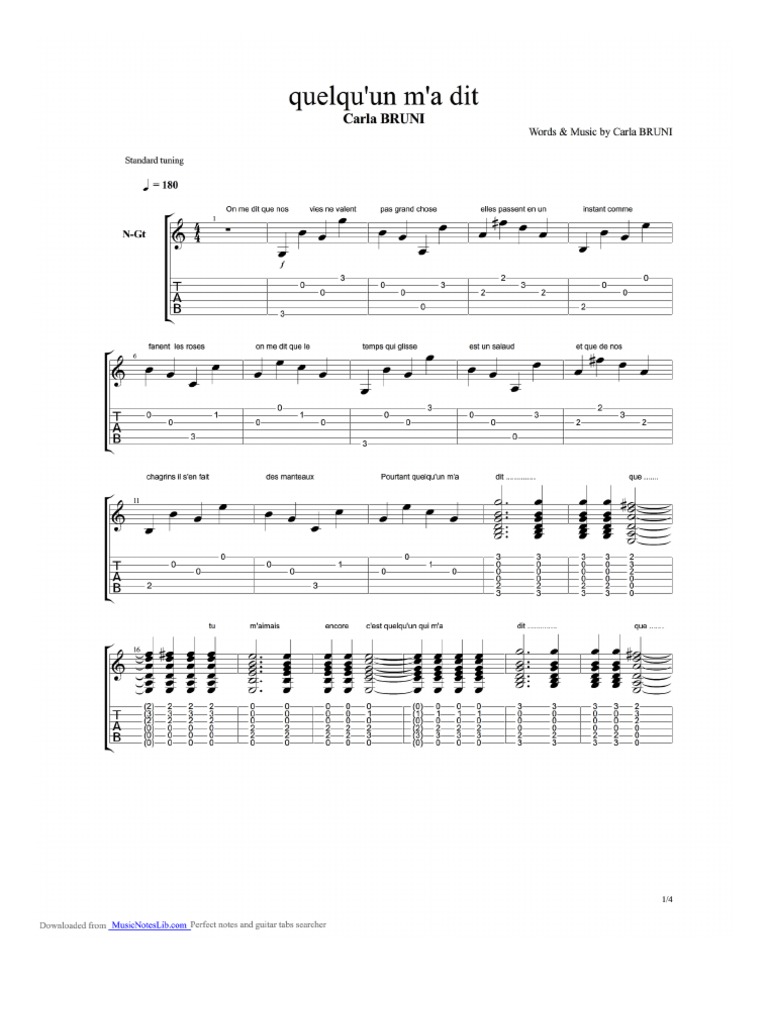 Carla Bruni Quelqu Un M A Dit 1 Music Sheet And Guitar Tab Pdf